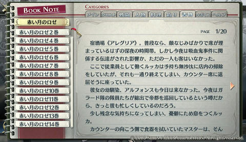 閃の軌跡クリア その他(Offline) 2013年10月26日 話題:英雄伝説 閃の軌跡 Vita版でプレイ クリアしました 前回のつづきから、スクリーンショット(SS)と共にざっとお伝えしていこうと思います なお、うちは攻略サイトではなく、紹介・レビューサイトの類いのため、細かくは書きません 会話シーンなどだいぶ掲載していますが、その状況へと至った経緯や「ここはプレイして、ぜひ自分の目で見てほしい」と思う箇所については、なるべく伏せるようにしています 学院祭のステージで着る衣装を試着中・・・ 女子のものは、激しく嫌がる一名を除いておおむね好評 ラウラには凄まれていただけに、リィンも一安心? 男子のはこんなの 確かに、マキアスはなんとなく浮いているような・・・ いよいよ学院祭の日がやってきました そして・・・か、気になりますな 学院祭、開催宣言! 学祭かぁー・・・懐かしい響きだな・・・ 各クラスの出し物、アトラクションが用意されています 乗馬やみっしぃパニック(モグラたたき)といったアクション性のあるミニゲームもあり 一緒に楽しんだ相手との親密度が上昇します 乗馬、難しかったけど目標タイムをどうにか達成 みっしぃパニックは、落ち着いてやればさほど難しくありません 小説「赤い月のロゼ」最後の第14巻をゲット パトリックと一緒に休憩中の、セレスタンより この画像は後で確認したものなので、どのタイミングでもらったのか忘れましたがw 3巻だけ抜けてます 確か7巻も取り逃していましたが、質屋で見つけました まぁ、ほとんど揃っているので満足です 1日目が終了、2日目はいよいよステージ演奏だーっというところで、旧校舎に異変発生 特別実習があるために他のクラスよりも時間が厳しい中、がんばって準備してきたんです エリオットの厳しいシゴキにも耐えて、練習してきたんです そりゃ、2日目の学院祭を中止にするなんて言われたら、黙っていられないでしょう 自分たちの手で、明日を掴むんだー っと、突入します・・・ まぁ、とんでもない場所ですよ・・・外観が 仕掛けこそありますが、構造はさほど複雑ではないので、迷うことはないでしょう 閃の軌跡のダンジョンは、どれもそんな感じです で、いかにもラストダンジョンっぽい雰囲気・・・ 最深部にて、ラスボスの貫禄十分な敵と交戦、これを撃破 あとは、学院祭と後夜祭を楽しむだけだな、と まぁ、この時点で(話の内容的に)続編が出ることは分かっていたので、後夜祭で何か起きそうだなーくらいは思っていました 以降は、イベントシーンが多くなります 3曲目は・・・過去シリーズで聴いたことのある歌でした うーむ、なかなかニクイ演出ですな この後、後夜祭へ 皆がダンスを楽しんでいると・・・ ほら、何か起きたわさ ただ、後夜祭で何かドカンッと起きて、そのままエンディングという流れかと思っていたんですが、違うようですね・・・ オズボーン宰相の声明 帝国最大の軍事拠点を壊滅させられたとなれば、鉄血宰相はどういった行動に出るか・・・ しかし、その声明を最後まで聴くことはできませんでした そして、トールズ士官学院にも危機が訪れます・・・ ここからは実際のプレイで見てもらいたいので、「敵」については伏せています 正直、あんなのまで出てくるとは思わなんだわ・・・ 最終決戦へと赴く前に、学院内の者たちに一通り挨拶 (この間、ずっと「まさに決戦直前」といった趣のBGMが流れていて、大変盛り上がります) パトリックも、最初はただ嫌みなやつでしたが、随分と印象が変わってきました 熱い言葉をかけてもらっています 思えば、学院内のサブキャラはみんな、ちゃんとキャラが立ってるんですよね 最初こそ、誰が誰だかサッパリ分からんという状態でしたが、各種イベントや会話などを楽しんでいく内に覚えてきました 手帳にも「人物」について情報が記載されていて、有り難いです 学院内を一通り回って、準備も調えて、いざ出撃 すでに教官たちが戦闘中・・・ 装甲車をあっさり撃破していますw サラ教官とナイトハルト教官も、いがみあっているようで息はピッタリ この後、さらなる強敵が登場 しかし、こちらにも助っ人が現れ、どうにかなりそうかと思っていたところで、反対側の街道に敵の気配が・・・ 最後の戦いだ、気張っていけー! まぁ、手下は問題ないんですが この後、いろいろあってですね・・・ 珍しく、リィンが声を荒げて怒鳴ったり・・・ それから・・・ ここでは恐らく、もっとも親密度の高いVII組メンバーが出てくると思います そして、仲間たちとの、別れが・・・(涙 怒濤のエンディングへ突入です クリアデータをセーブし、それをロードすればデータを引き継いだ状態で2週目をプレイできます 取り逃したアイテムを探したり、1週目とは異なるメンバーとの親密度を高めたり、できます 続編で何らかの特典を受けられる可能性もあるため、クリアデータは消さずに残しておきましょう 感想 難易度EASYでやっていたこ