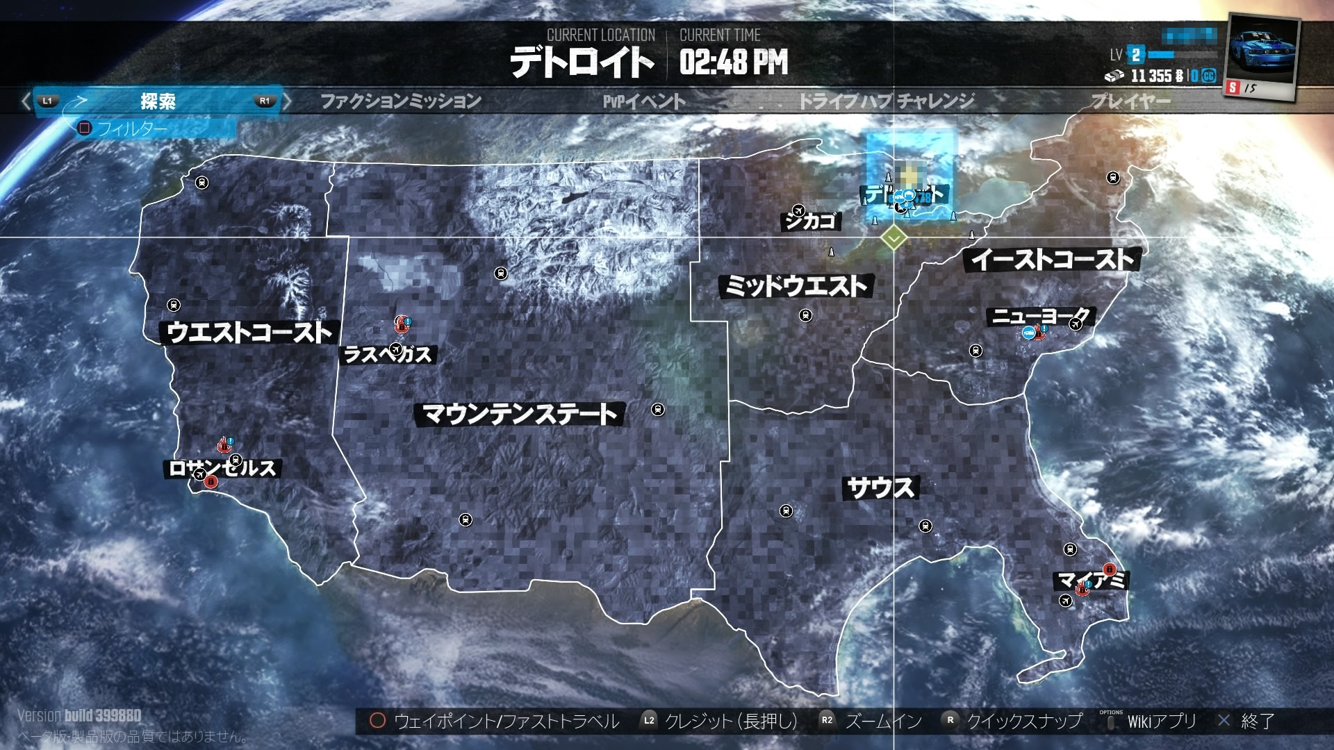 ザ・クルーβ版(PS4版)をプレイ(動画あり) その他(Online) 2014年11月26日 話題:The CrewオープンワールドMMOレーシング「ザ・クルー」2014年11月25日(火)~11月28日(金)17:00まで、無料でプレイ可能なオープンβテスト実施とのことで、やってみました(PS4版限定)まずPS StoreからDLするんですが・・・時間帯によってはかなり時間かかりそうですなw動画の前に、先に画像を1枚 オープンワールドのため、これだけの範囲をシームレスに走行可能1度訪れた施設へは瞬時に移動できるほか、交通機関を利用して遠隔地へ移動することも可能ですでは、動画あちこちぶつけまくりの迷いまくりですが、それもまた楽しい他のプレイヤーにぶつけたりもしていますね悪気はないんです・・・見所は、4分30秒時点、6分20秒時点また、7分40秒あたりからストーリー進行投稿 by フランシスコ ザヴィエル.まぁ・・・おそらく最初はみんなヘタですwそれにしてもオープンワールドのMMOなんて随分とメモリ喰いそうなタイプのゲームこれまではほぼPC専用のようなイメージでしたが、PS4ならプレイできるんですねー(シェアもできます!)改めてパワーを見せつけられた気分ですプレイ中、すげぇとかやばいとか連呼していました^^;では、以下はスクショで紹介車カスタマイズこれは、他のレーシングゲームでもあると思いますが外観のカスタマイズや性能の強化などができます 内装も変更可能 フリードライブについて wikiという機能で、解説が見られますプレイヤーたち他のプレイヤーも、通常はフリードライブ状態でそこら中を走ってるわけですねMMOならではの感覚です 付近のプレイヤーを検索し、クルーに加えることができますクルーってのは、一時的に組むパーティみたいなもんですかねークルー同士でボイスチャットができるようです ドライバー情報(実績など)の確認のほか、プレイヤー情報も見られるようで・・・ので、事前にプライバシー設定はしっかりしておいた方がいいと思いますwスキル特定の課題をクリアすることで、報酬が得られるもの 各地に散りばめられていますパーツ 車に装着するパーツ装着することでカーレベルが上昇、性能がアップしていきますプレイヤーのドライバーレベルが低いと装着できない場合があります流れとしては、ミッションやスキルなどをこなしてレベルを上げていき、パーツを集めて車のレベルもアップしていく・・・という感じなんでしょうね探索という楽しみ ランドマークを発見したり、隠しマシン組み立てに必要なスクラップ?を探したりといった楽しみもありますプロローグクリア後のセーブ・・・ セーブ? インストール?この時だけやたら時間がかかりました1時間か? 2時間は掛からなかったと思いますが・・・とにかく長いなんてこともあったもののうーむ、他にもプレイ予定タイトルありますから、これはまだ購入確定ではないんですが、なんつーか惹かれるタイトルではあります Amazon.co.jp ウィジェット Amazon.co.jp ウィジェット Amazon.co.jp ウィジェット[0回]