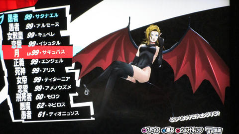 ペルソナ5を満喫 その他(Offline) 2016年11月11日 話題:ペルソナ5なんとか、Gジェネ ジェネシスやFF15発売前に、ペルソナ5を終えられそうです。プレイ自体は発売月の9月から始めていましたが、1度のクリアでは満足&納得のゆく状態では終えられず、珍しく周回プレイをしていました。自分の好きなペルソナを育て、状況に応じてペルソナを切り替えつつ戦うわけですが、ちょっとGジェネなどと似ているところがありますね。気に入ったキャラを好きなように、とことん強化できる・・・こんなに嬉しいことはない(アムロ風(旧ザクを改造レベル99まで育てあげたことを思い出した)と、いうわけで、育てたペルソナを9体、ご紹介します。これらで1つの部隊、チーム、そんな感じです。それぞれ、全身画像とステータス画面の2枚を撮影。(クリックすると別窓で開きます)サタナエルストーリー進行により「愚者」の最強ペルソナ、ヴィシュヌが解禁・・・されたと思ったら、その上がいたというオチwあらゆる攻撃に対して、「耐性」以上の防御特性を備えていますね。この守りを打ち破れるのは、「万能」属性のみでしょう。あえて、単体系の物理アタッカーとしています。というか、全体系まで入れると、急所撃ち(銃撃の攻撃力50%アップ)やアドバイス(クリティカル率アップ)が入らないので。ゴッドハンドは「超特大ダメージ」で、ワンショットキルは「特大ダメージ」ですが、急所撃ちとアドバイス、両スキルに加えて、元々、ワンショットキルはクリティカル率が高いため、こちらで攻撃することも多いです。(消費HPもゴッドハンドより少ない)なお、主人公には、アクセに「貼る大気功」を装備させ、さらに、9体すべてのペルソナに「大治癒促進」を覚えさせているため、HPもSPも毎ターン回復状態。すべてのペルソナに、敵の命中率が自動的に半分になる「アリ・ダンス」を覚えさせています。スキル枠に余裕のあるペルソナには、それに加えて「大天使の加護」、火炎・氷結・疾風・電撃・祝福・呪怨・核熱・念動、各属性の回避率が自動で2倍になるスキルですね。それから、物理主体(サタナエルしかいませんが)のペルソナには、スキル使用時の消費HPが半分になる「武道の心得」を、魔法主体のペルソナには、スキル使用時の消費SPが半分になる「魔術の素養」を、覚えさせています。一部、スキル枠の都合で覚えていないペルソナもいますが、それらのペルソナが覚えているスキルはあまり消費SPが多くないので、よいかと。SP回復手段も用意してありますし。では、続き・・・アメノウズメ 本来、所有していたスキルをがらりと変えまして。核熱系アタッカーにしています。火炎・氷結・電撃・疾風の4属性については仲間に任せることにして、主人公は、核熱・念動・祝福・呪怨・万能属性を揃えています。だからと言って、真(核熱系ペルソナ所持)や春(念動系ペルソナ所持)をバトルメンバーに加えないわけじゃありませんけどね。アルセーヌ 主人公の初期ペルソナですね。速度がとんでもないことに(笑)。で、こちらは念動属性のアタッカー。弱点属性が2つある都合上、大天使の加護を覚えさせることができませんでした。しかし、アレですな。低レベルの内、というか、最初に「合体」を経験するチュートリアルの際にアルセーヌはいったん去ることになりますが・・・。最初は弱かった彼も、Lv.99ともなるとこれほどに強くなるものなんですねぇ。感慨深し。エンジェル 祝福属性のアタッカーということで、本来の性質からの変更はなし。ボス戦も想定しているため、即死系の魔法は外しています。これも元々はレベル10台のペルソナですが、ここまで育てるとやはり強い・・・。アリス 「死神」属性の最強ペルソナ。呪怨属性のアタッカーに。「死んでくれる?」は、敵全体に呪怨属性の即死効果を高確率で与えるもので、育成方針を厳格に適用するなら別のスキルで上書きするところですが、おそらくアリス固有のスキルなのでしょう。せっかくなので残してあります。ところで、合体時のアルカナ属性の関係を、わざわざ表計算ソフトを使って記録しながら自分で調べあげたんですが、「死神」属性のペルソナが誕生する組み合わせでいくら合体してもアリスになりませんで。(モトどまり)こうなったら初期レベルの低いペルソナも含めて試してみようと、色々やっていたら「悪魔」属性同士で誕生したというオチ。キュベレ 「女教皇」属性の最強ペルソナ。苛烈な攻撃も避けられるよう、マハスクカジャを覚えさせ、SP不足に備えて吸魔を。念のため、万能属性魔法もあった方がいいと思い、それも覚えさせておきました。サキュバス サキュバスの初期レベルは、確か7か8か9、そこらです。あくまでサキュバスらしくあって欲しいため性質は変えていませんが、これもアルセーヌやエンジェル同様、かなり強くなりましたね。精神系の状態異常の敵には念動系の攻撃が特効となるので、サキュバスで洗脳 > アルセーヌ