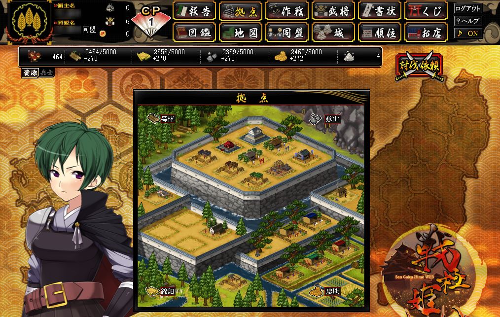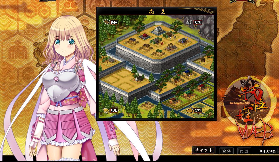 そのブラウザ版ということで、手軽に戦極姫(せんごくひめ)の雰囲気を楽しむことができます