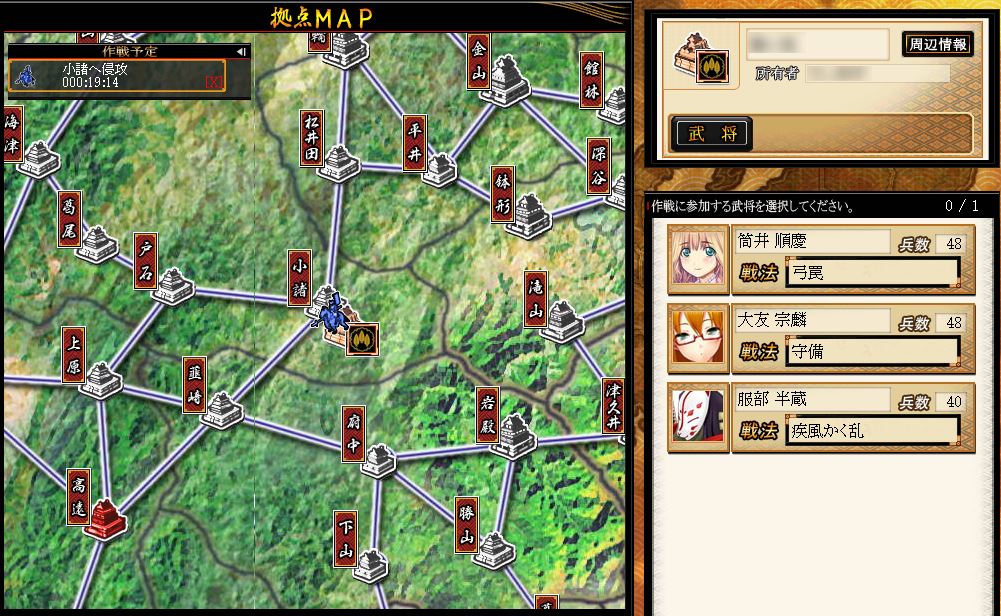 スタート地点に選んだ領地は奪われないので、じっくりのんびり、武将ならびにイベントのコンプを目指してゆくこともできるのですね