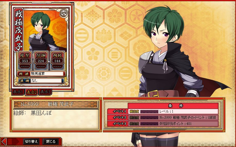 2)領土争いにはかかわらず、武将を集めて親密になり、とにかくイベント収集にいそしむ
