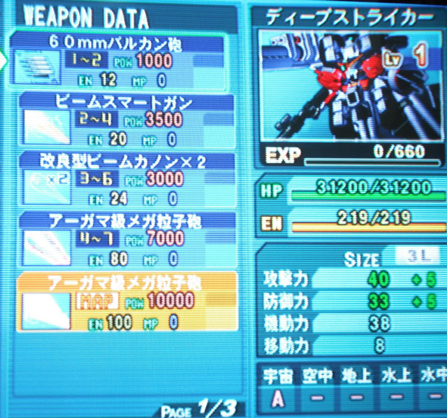 サイコロG、出撃 GGENERATION 2009年08月27日 GジェネWARSの、オリジン・ジェネレーション(初代~V)が終わりました アナザー・ジェネレーションは・・・いきなりGガンの世界 (他のシリーズからやっても良いんですがw)「Gガンダム」と言えば、あらゆるガンダム映像作品の中で、異色中の異色いまだ、その頂点に君臨し続けていますね 熱くて泣けるGガンは素敵です さて、目下、自軍強化中なわけですが、機体もいろいろと手に入ってきています 宇宙世紀の大型MS・MAなんかは、大方揃っているでしょうか ジオング系はグレート・ジオングまで行きましたし、(ブラウ・ブロ、エルメスからスタートして)クィン・マンサも開発して、α・アジールやラフレシアもありますサイコガンダムもMk-IIまで開発済み (ついでにサイコロもw) 試作ガンダム3号機(デンドロビウム)もあって・・・ノイエ・ジールのIIがまだ開発されてないかなっと それくらい・・・?ハロは後でゆっくり造りますね 今回はなんか、開発・設計もラクなようなw そうそう、Ex-S(イクスェス)ガンダムの汎用性が犠牲になりますが、プロフィールを埋める目的もあるので「ディープストライカー」も開発しておきました 初代~OOまでが参戦していて、宇宙世紀の機体の中には削られたものもあるわけですが、残っているものはしっかり残っています 「逆襲のシャア」にちなんだステージでは、アムロとシャアはそれぞれ、Hi-νガンダム、ナイチンゲールに乗って登場してきますし まぁ、削られたと言っても、個人的には結構、好きな機体が残っています ・・・し、G~∀で好きな機体もありますからね 好みの機体で自軍を固めるくらいは、余裕でできます ついでにもう1枚 Vのラストステージにて サイコロガンダム、出撃させてみたらデカくてコワかったんです ホワイトアークが喰われそうなくらいデカイですよ ま、格闘武器がないので、このステージ限りで引っ込んでもらいましたが それに、武装が2つしかないために戦闘のパターンが少なく、見ていてツマランのですw そういえば、「∀ガンダム」の劇中でちょこっとだけ「カイラスギリー」っていう言葉は出てきましたやね Vのステージやってて思い出しました ここは、それなりにうまいことやったなぁ、と んじゃ、引き続き、楽しんできますよっと 現在のマスターキャラロラン、ガロード、シーブック、コウ Amazon.co.jp ウィジェット Amazon.co.jp ウィジェット Amazon.co.jp ウィジェット[0回]