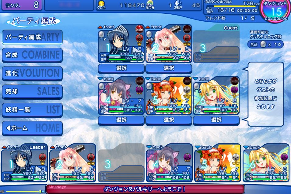 前衛3・後衛3の6人パーティですが、内1人はゲスト(他プレイヤーの妖精)なので、自身で編成するのは5人