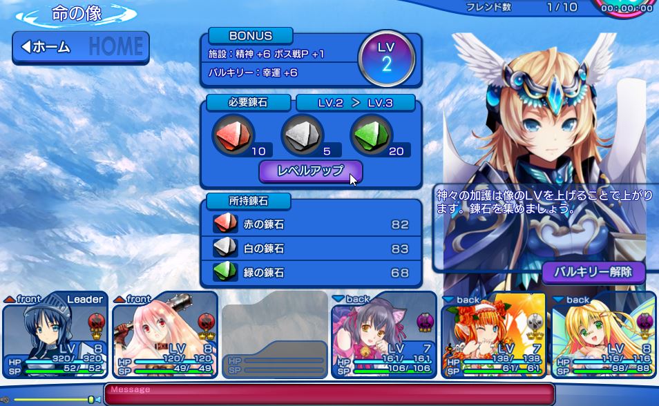 妖精たちの能力を補強する施設(像)がありますが、そこに救出したバルキリーをセットすることで、さらなる加護を受けられるようになります