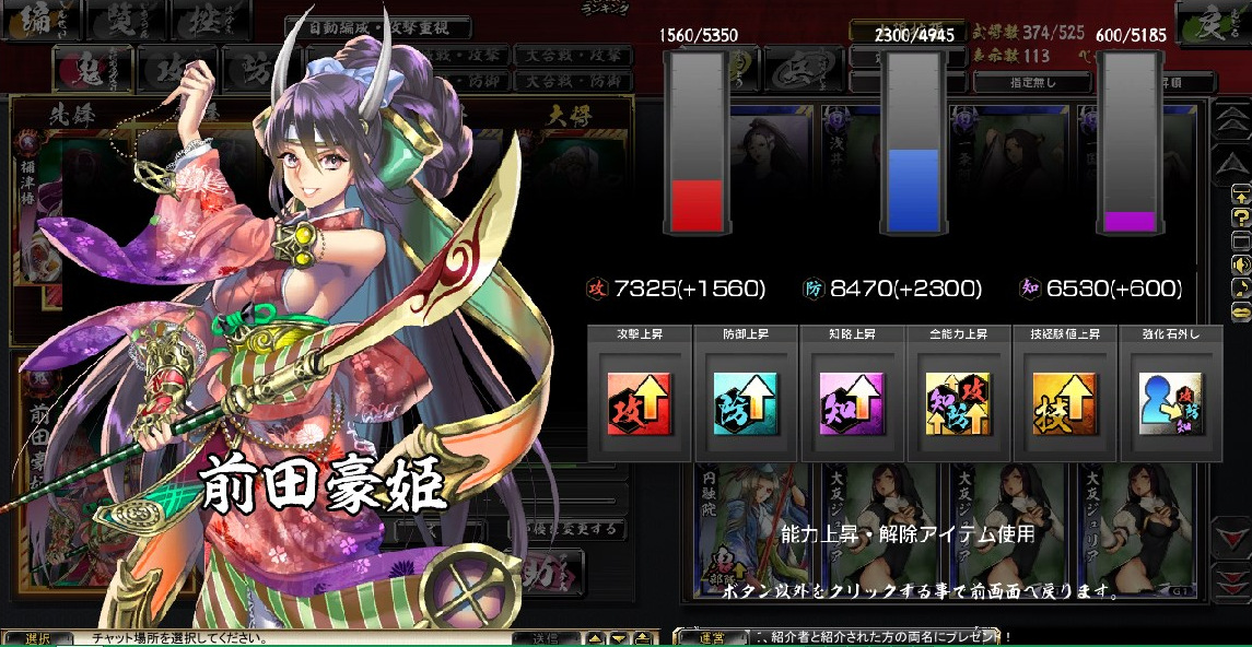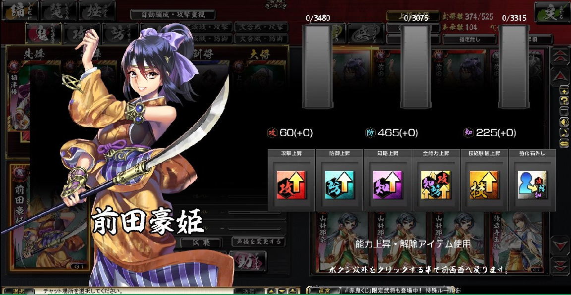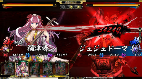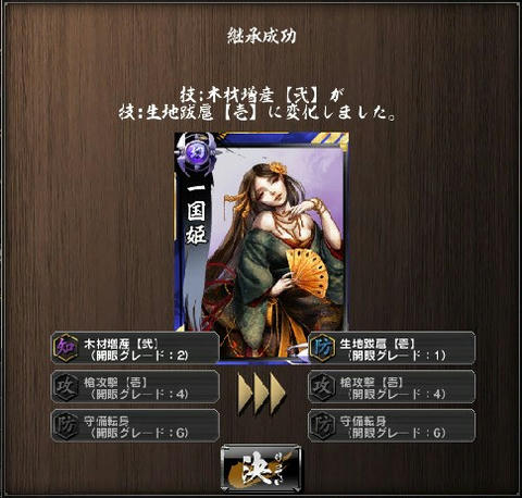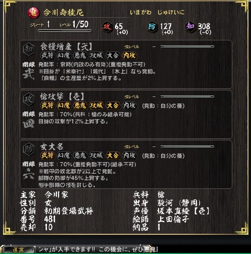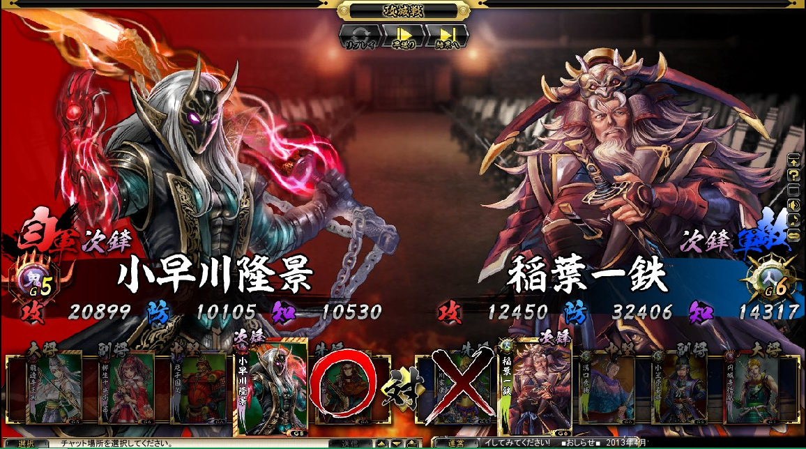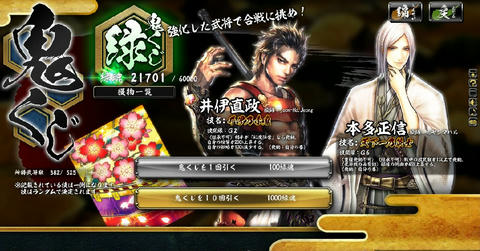 鬼武者Soul その他(Online) 2013年04月23日 25日からmixiゲームでも「鬼武者Soul」をプレイできるようになるそうなので、本作の魅力についてちと語ってみます 完全に我流なので知らずにやってる部分も多いですが、純粋に「自らの体験」による紹介です 城下~演出~物語~武将の順に話を進めていきますね 最後には、プレイ開始時にどこを重視して設定するかについて、少々 ちょっと長いですが、これから始める方にとっては参考になる内容もあるかと思います 自在に城下を開発 内政画面 建築物を好きなように配置して、発展させていきます 効率重視でいくもよし、「鑑賞系」建築物を多数配置して景観重視でいくもよし 配置済みの建築物は、自由に「収納」したり「移動」したりできるので、模様替えも思いのままです 城下町自慢コンテストも開かれていますよ 迫力の演出 武将にはボイスが設定されていて、戦闘時には頻繁にしゃべります <悪鬼羅刹戦> 飛び交うボイスに加え、エフェクト、サウンドも派手め ついでに言うと、数字のケタが大きいところも派手 悪鬼羅刹は強力ですが、最初はレベル1からの登場のため、駆け出しプレイヤーの部隊でも倒せます 倒される毎に強くなっていきますが、フレンドに支援要請を出して手伝ってもらうこともできます <攻城戦> こばやんがカッコイイので載せてしまった! 攻城戦は、対人戦の一種 通常は自前で5人の武将を揃えて部隊を編成しますが、攻城戦で設定するのは1人だけです (攻撃用と防御用に、合計2人) 同国プレイヤーの中からランダムに5人が選ばれ、部隊が編成されます 1度戦闘を行うとふたたびランダムに編成されるので、毎回、異なる顔ぶれで戦うことになります こう言うとアレですが・・・ 自分の強さに自信がなくとも、ほかの4人が強ければ勝てたりします^^; でもまぁ、各月の下旬に三日間ほどしか行われない戦なので、いろんな人が参加して楽しめるなら、それが良いんじゃないかなと思います 対人コンテンツとしては、合戦、天下分け目戦、攻城戦、大合戦とありますが、いずれも行動ポイントを消費しません かわりに金銭・食料・木材・鉄鉱などを消費するので、それらの物資をしっかり蓄えておけばガンガン戦えます ちなみに、攻城戦と大合戦は特殊な仕様なので、参加前にマニュアルに目を通した方が良いです 物語 「鬼武者Soul」オリジナルのストーリーが展開される「鬼物語」を始め、多彩な物語を楽しむことができます 期間限定のイベントクエストも頻繁に配信されるので、読み物が好きな人にとってはタマランです ただ、基本的には敵との戦闘が発生します 強い敵が現れるものに挑戦するのは、最初はちょっとムリです 部隊が強くなってくれば、いろいろ楽しめますよ お話を読むのがメンドクサイって場合には、「簡易自動」機能を使えばすっ飛ばしていってくれます 武将をどんどんゲット 武将を獲得できる機会が、ものすごく多いです 獲得方法の主なものは・・・ 1.物語で獲得 物語を進めていると頻繁に配下に加わります 2.くじを引いて獲得 いわゆる「ガチャ」に相当するものですが、「鬼武者Soul」の場合、これは課金ではないのです 色のついた各種の「魂」を集めて、それに対応する「鬼くじ」を引きます 緑の鬼くじ画面 紫魂:物語で獲得 緑魂:悪鬼羅刹で獲得 以下は対人系コンテンツ 白魂:合戦(シンプルなふつうの対人戦。隣国のプレイヤーと対戦)で獲得 赤魂:天下分け目戦(合戦を全国規模で楽しめるようにしたもの)で獲得 黒魂:攻城戦で獲得 青魂:大合戦で獲得 プレイするコンテンツによって、獲得できる魂が決まっています 内政部隊を派遣する旅交易やログインボーナスで獲得できる場合もあります なお、唯一「黄魂」だけ例外で、これはネットカフェでプレイするとたまります 以上のくじは並列の関係です 対人戦コンテンツで得られるからといって、特別に上位ということにはなりません まぁ、駆け出しの頃にはなかなか獲得できないこともあって、魅力的に感じる武将は多いですけどね^^ で、改めて上の画像をご覧頂きますと・・・ 緑魂が21000ほどたまっています 悪鬼羅刹を景気よく倒してたら、いつの間にかたまっていました どのくじも1回当たり100魂なので、この場合、210回引けます(厳密には217回ね)全部武将のカードだったとしたら(武将強化用カードや建築物が出る場合もあり)、210人増えるわけですね 強化し放題ですよ 物語で増える分と合わせて、とにかく「鬼武者Soul」は武将をどんどんゲットできます まずは紫魂、つぎに増えやすいのは緑魂 いろんな武将がたくさん手に入るなら、そりゃ楽しいですよね- ってことで ヘタレ武将でも一線級 武将をたくさん獲得できるのは分かったけど、結局は雑魚武将ばっかりなんでしょ? なんて思っちゃうかもしれません 確かに、初期能力低めな武将も多いですが、大丈夫です どんな武将でも強くなれるんですよ・・・ってところを紹介 開始武将、上杉謙信(グレード1、レベル1) ゲ