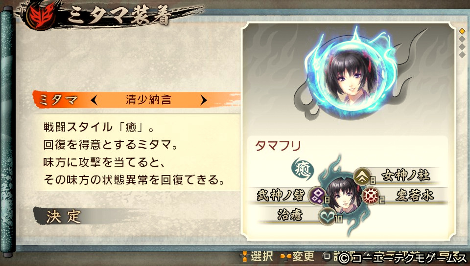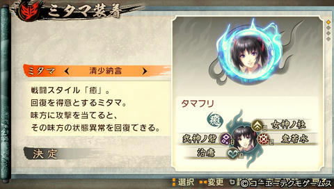 ミタマをセットすることで、戦闘スタイルを変化させられます