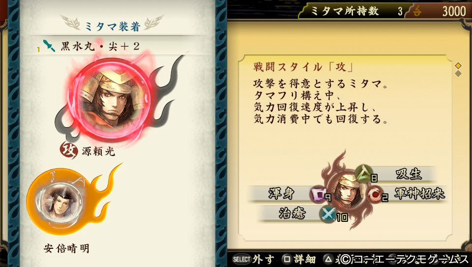 ミタマ関連で、アクション体験版と大きく異なるのは、ここ