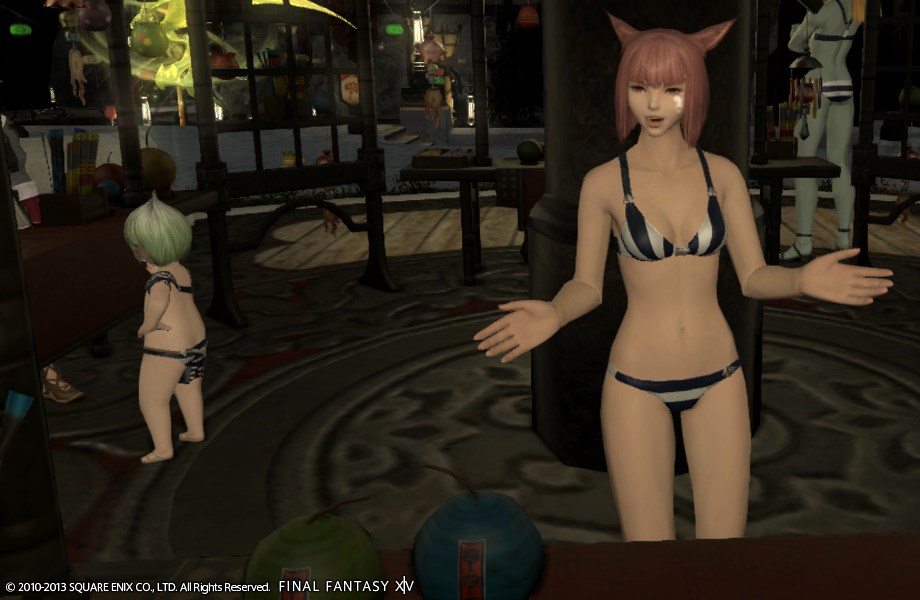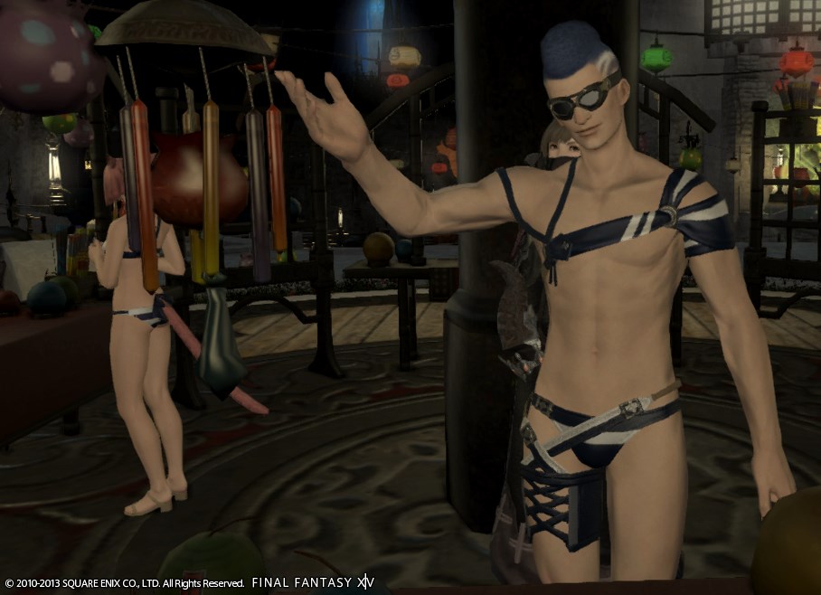 祭りだ!水着だ! Final Fantasy XIV 2013年09月09日 話題:新生Final Fantasy XIV 9月12日(木)に長時間メンテ第2回が実施されるようです さらなるテコ入れってとこですね メンテ後の日記で「復活!」って書けるといいなぁ それはそれとして、新生FF14初のイベント「紅蓮祭」が始まりました ログイン制限掛かってるのにそれどころじゃない なんて声も多いようですが、これは以前から予定されていたものなので、きっちりやってくれないと困ります 楽しみにしていた人も多いですからね 現状に配慮してイベント開催期間を長めにとるとのことなので、少なくとも、ログイン制限が頻繁に掛かっている内にイベント終了なんてことには、ならないでしょう このイベントでは、設定上、「耐熱装備」と呼ばれるものが手に入ります それが一般的に言うところの「水着」 で、運良く入れている人間はこうしてスクリーンショットを掲載するわけで・・・ 祭りの雰囲気 提灯やバルーンで街が彩られています いやぁ、いかにもファンタジーって雰囲気で良いですよ ボンバード討伐 各地でボンバードと戦うF.A.T.E.が発生 貢献度に応じた量の「ボンバードの死灰」を獲得でき、街にいるABU(アンチ・ボンバード・ユニット)隊員に耐熱装備や花火と交換してもらえます なにやらコスタ・デル・ソルへ向かっている人が多いようなんですが、街から出てすぐのフィールドでも発生します 低レベルでも安心ですぞ どこで起きるか把握できていない場合は、こまめに地図を開いてF.A.T.E.が発生していないかどうか確認しましょう 補給品を扱うABU隊員たち 耐熱装備にはいくつか種類があります サンプルとして、ABU隊員が着ているものをご紹介 彼女らはNPCなので気兼ねなく顔を出せます ミッドランダーかわいいですね ミコッテは部族問わず、かわいい アニキもぬかりなし! キミも耐熱装備を身にまとい、 その肉体美を存分に見せつけよう!! エレゼンのお姉さん PCなんで首から下だけですが セクシーなエレゼンのお姉さんで、 褐色の肌で、白い耐熱装備を着て・・・ これで投げキッスなんぞされようものなら、間違いなく悩殺されます ララフェル男子のいたずら いくら身長低いからって、そんなとこに頭突っ込んだらいかんよ! まったく、うらやmけしからんね! Amazon.co.jp ウィジェット Amazon.co.jp ウィジェット Amazon.co.jp ウィジェット[0回]