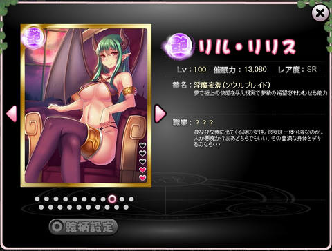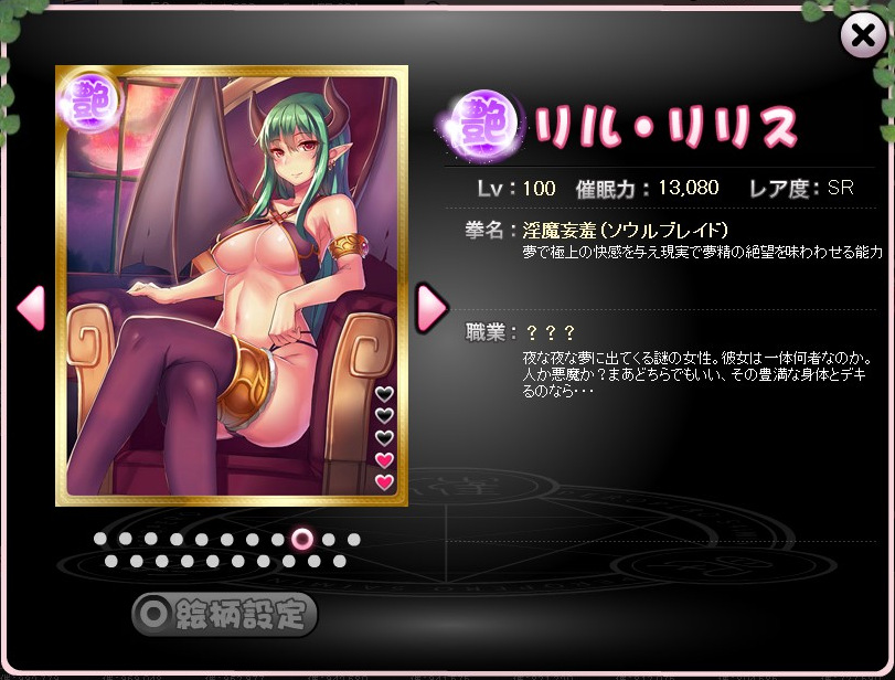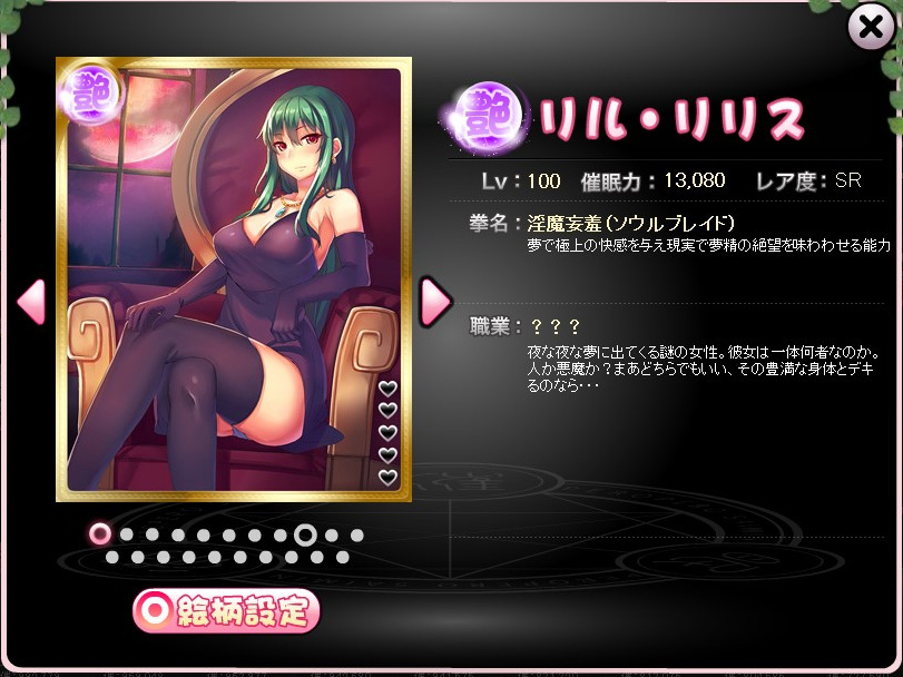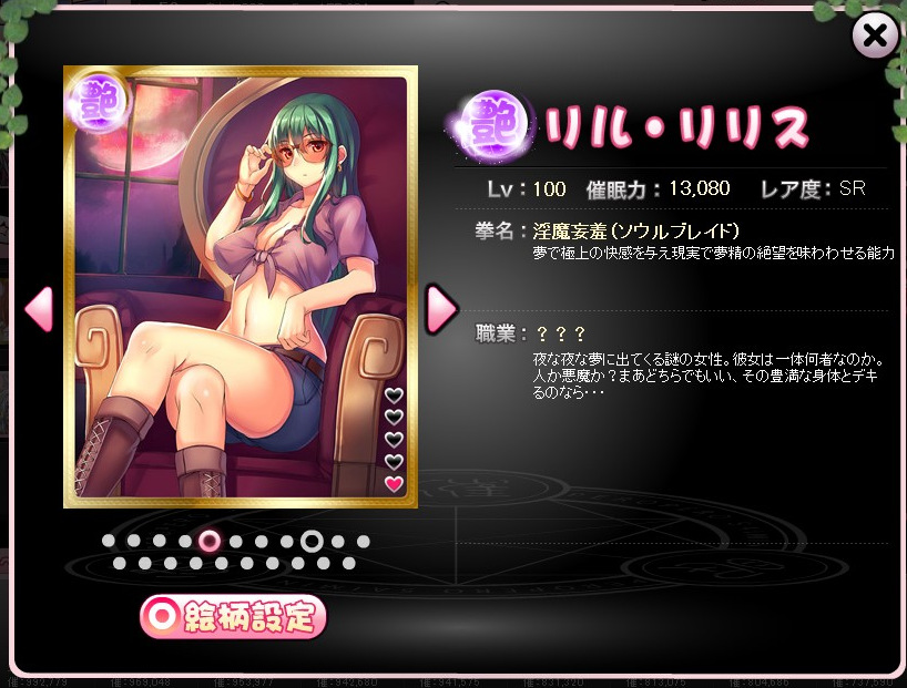 自身がゲットしていなくとも、ほかのプレイヤーが、その絵柄のリリスを推しカードに設定していれば、ゲーム内で拝めます