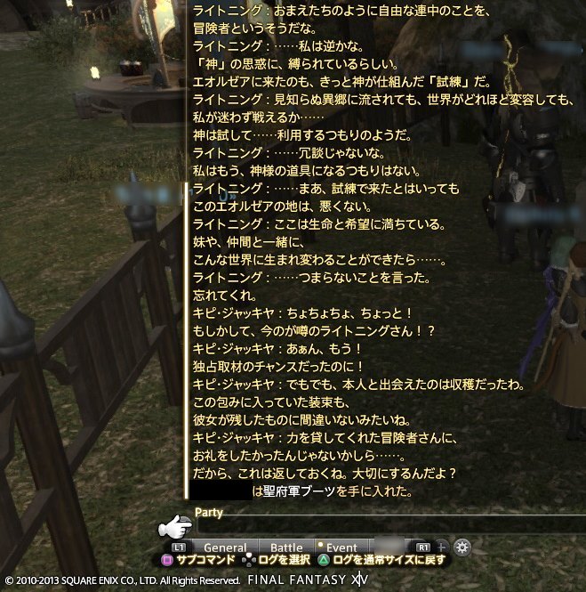 ちなみに、LRFF13のミコッテ衣装は、このエオルゼア滞在中にプレゼントされたもの、という設定のようです