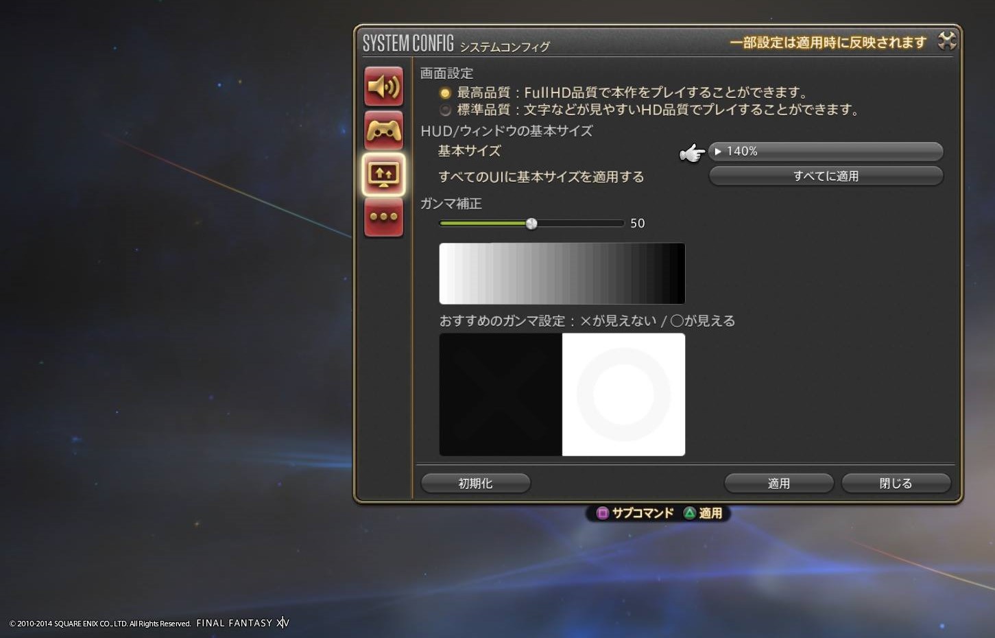 PS4版のSSを載せよう Final Fantasy XIV 2014年04月05日 話題:Final Fantasy XIV スクリーンショットを4点、掲載 (内1点は解説用) 予め断っておくと・・・ JPEG形式で保存されているため、実際よりも劣化しています 画面に映っているものはもっときれいです 使用しているノートPCの液晶が古くてしょぼいためにそう見えるということも、あるでしょうがw UIの表示が改善された (PS4版)βテストフェーズ1と比べて、まず変わったのはここですね ユーザーインターフェイスの部分 ここがデフォルトの140%だと、フルHDでもPS3版のHD画質とさほど変わらない大きさで表示されます (環境によっては調整が必要) また、フェーズ1でとにかく小さくて読みづらかったNPCのセリフも大きく表示されるようになり、だいぶ見やすくなりました チャット入力中の変換候補表示時の文字の大きさは、チャットログの詳細設定(キャラクターコンフィグ)で変更可能 チャットログのフォントサイズも、チャットログの詳細設定(キャラクターコンフィグ)で調整可能 また、チャットウィンドウのサイズは、ウインドウ右上の部分をドラッグすることで、拡大・縮小可能 (マウスがなくても、L1+R3ボタンでパッドマウスモードに切り替えられます) タッチパッドをマウス代わりに使用する場合、特にドラッグ操作が分かりづらいので公式サイト(Lodestone)掲載のマニュアル(PS4版プレイガイド)を読んだ方が良いです 分かれば、一々パッドマウスモードに切り替えなくても調整できる部分があったりするので、場合によっては便利 どうしても使いにくいって方は、PS3版同様にパッドマウスモードで調整していけば良いです ※ 2015年5月追記 The Lodestone(ロドスト)への画像アップの仕方 現時点(2015年5月)で、PS4のブラウザはアップロードに未対応だそうで ロドストへ直接、画像をアップすることはできません 方法1 USBメモリ等に画像を移し、ブラウザを使用可能な他のハードへ転送。そのハード上でアップロード 方法2 PS4の連携機能を利用し、TwitterやFacebookへアップ。他のハードでダウンロード。ロドストへアップ どのみち他ハードを介する手間が必要になります それならばいっそ、ということで、僕はロドストとは別に画像をウェブ上で管理できるようにし、そちらへアップした画像を(ロドストの)「外部画像を参照」機能を使用して日記上に表示しています フルHDサイズの画像は、ロドストへのアップ時にリサイズされますが、利用するウェブサービスによってはオリジナルサイズでの表示が可能 また、ロドストの画像保存容量はさほど多くないため、たくさん画像を保存しておきたければ、ロドスト以外で管理する方が良いかと思います オープニングを振り返ろう 既存キャラで始める場合も、最初にオープニングが流れます せっかくなので改めてじっくり鑑賞・・・ プレイを開始した頃に抱いていた想い 「冒険者」であるために大事なもの そういったことに気づかされた気分でした なんとなく撮った ウルダハへ飛空艇で到着 てまぁ、それだけなんですが・・・ コボルド集落の夜 うおっ、なんてきれいな星空なんだ! と、感激して撮った一枚 フェーズ1の時はここまで来なかったんです ただねぇ・・・ やっぱり実機上の方がもっとクリアだな^^; ロドストの日記で、 50型以上のテレビでプレイしてみて感激した って方がいましたが、そうでしょうねぇ うちの32でさえそうですもん あんな光景が大画面いっぱいに広がって、プレイできるなんてね 感動も大きくなりますよねー 難点を挙げるとすれば、 つい食い入るように見てしまって目が疲れがちになりそう、ということですかねw 目薬を常備しておこう Amazon.co.jp ウィジェット Amazon.co.jp ウィジェット Amazon.co.jp ウィジェット[0回]