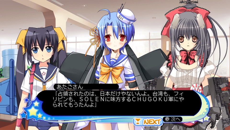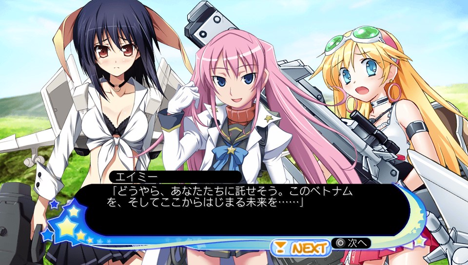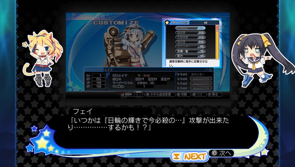 もえせん++ その他(Offline) 2012年08月13日 うん、買っちゃったよー 萌え萌え大戦争☆げんだいばーん++(ぷらすぷらす) 前回のはPSP版だったから、これが初購入のVitaタイトルw で、中東戦線からぼちぼちとプレイしてて、今は世界大戦戦線の極東編 だいぶ終盤に近づいてるっぽい <収録シナリオ> 1.中東戦線(イラン・イラク戦争) 2.欧州戦線(コソボ紛争) 3.極東戦線<IF> ~ここまで無印版 4.ベトナム戦線(ベトナム戦争) ~PSP版追加シナリオ 5.第三次世界大戦<IF> ~PS3/PS Vita版追加シナリオ 4はタイムスリップものですな DLCのシナリオも配信され始めてるけど、ひとつ520円はちょっと高いような? 中身のボリューム次第だけど・・・ せめて300円、できれば150~200円 タダが一番嬉しいけどw SLGパートのシステム面では、AP(行動力)の範囲内で移動・攻撃を自由にできるようになったことから、2次大戦(略)よりおもしろい 必殺技使用のためのSPも、ステージ中にたまっていくようになってるから、2次大戦(略)みたいに、いきなり必殺技で敵乙女を蹴散らすなんてことはできない まぁ・・・ 強化した通常の兵装で蹴散らしてるけどw (主に兵装3) ただカウンタースキルを持ってる相手は要注意 乙女のクラスチェンジというのはなくて、レベルアップやコミュニケーションパートで獲得したポイントを消費して、好きな能力を上昇させられる スキルも付け足したり、付け替えたりできる ただ、特定の好きな乙女に偏って育ててると・・・ 状況次第では苦しくなるかな 目を掛けている乙女が出撃できない場合もあるので ちなみに、通常兵器を僚機として編制できる場合もあるけど、そっちは成長しないので乙女の方に専念できる (厳密には、編制時点でのリーダー機(乙女)と同じレベルで出撃する) ついでに言うと、BGMも結構好き 以下、画像とともにざっと紹介 一応、伏せておきます チュートリアルからこんなノリ 当然、そんなダ○ターンな攻撃はできませんw どっかで聞いたセリフ チャレンジャー2をモチーフにした彼女 ふだんはのんびりおっとりなものの、戦闘になると豹変する でも、一部のヤバい連中に比べたらまだかわいいもの 思わずツッコミを入れたくなるセリフ 大船に乗った気でいてほしい・・・と言いたかったらしいけど、全然ちがうからw まぁ、おバカな会話が多いね、ほんと でも中には、悩みを抱える乙女もいる ちょっと涙を誘うシーンもある 美少女ゲームの要素も盛り込まれている分、ステージ間のアドベンチャーパートは相変わらず長い一応、スキップ機能はあるけども 以下、シナリオ絡みで 極東戦線 日本は憲法第9条により・・・専守防衛の場合に限って武力行使が認められる SOLENの不穏な動きを察知したアメリカは、乙女部隊の指揮経験があるアラン・スミスを日本へ派遣 一部のシナリオ・状況を除いて、基本的に彼がプレイヤーの分身として乙女部隊の指揮を執っていく (乙女たちに、いじられるのも彼だ!) いよいよ日本の出番! 「平和ボケしている」と侮ってかかってくる敵を返り討ちにするのは楽しいですなー ただ初戦はちょっと敵が強いので、注意ですぞ 日本の未来は、F-2戦闘機の碧の働きにかかっている・・・ ベトナム戦線 グラーフ、ネコ、碧、イーディスの4人は謎の現象でタイムスリップしてしまう・・・ 2次大戦(略)に登場したエイミーが指揮官 実際には戦わないけど鬼教官w 第三次世界大戦 4人がベトナムから戻ってくると、世界は大変なことに・・・占領された日本を取り戻せー ちなみにこの大統領は、ジュニア その父親は、パパw その間に大統領になったのは、クリキントンw 日本の首相は、タローで SOLENには、チョフチョフ書記長がいる・・・ (よけいに発音しにくい) まぁ、ほかにも面白い名前の人が・・・ ちなみにタローさん なかなかいい男っぷりです へんな顔してるけどw いよいよ、心神をモチーフとした、しんちゃんが登場 (向かって右ね) でもステルスのスキル、覚えてなかったよ・・・ こだわる人は、カスタマイズで覚えさせようw 口調がなんというか、2次大戦(略)の零戦レイを思い出すなぁ こっちは後輩タイプだけどね と、そんなわけで 美少女ゲームに戦術級シミュレーションゲームがついている感じというのは、今までどおり どっちも好きな人は楽しめます、はい ちなみにSLGパートのマップ自体は小さめなので、大戦略よりはシミュレーションRPGな感じかもしれない Amazon.co.jp ウィジェット Amazon.co.jp ウィジェット Amazon.co.jp ウィジェット[1回]